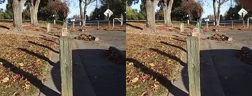 Следуя принципу, использованному в стереофотоаппаратах для создания 3D-изображений, можно создавать объёмные снимки, используя обычную фотокамеру, экономя при этом средства, необходимые для покупки специального стереоустройства. Для этого достаточно просто сделать два снимка, сместив при этом фотоаппарат перед вторым нажатием на кнопку затвора на несколько сантиметров вправо или влево. При съёмке удалённых объектов (пейзажей) смещение может понадобится больше, от нескольких метров. (Метод «с ноги на ногу»: левое изображение снимается при опоре фотографа на левую ногу, правое — на правую. Таким методом сняты все стереоизображения высадок «Аполлон» на Луну). Если изображение отредактировать так, чтобы каждый глаз видел отдельное изображение, составной снимок получится объёмным. При этом методе возникают проблемы со смещением объектов на разных снимках, но при компьютерном редактировании стереопара получается приемлемого качества. При движении, например, если снимать с корабля или самолёта, можно получить стереоизображение берега или облаков. Это позволяет увидеть объём там, где его обычно не замечают — на очень далёких объектах. При съёмке с сильно увеличенной стереобазой следует иметь в виду что субъективно объекты на таких изображениях могут выглядеть «мультяшно», как уменьшенные макеты реальных объектов. Метод «с ноги на ногу» имеет существенный недостаток — сцена должна быть статичной, невозможно снять движущийся объект.