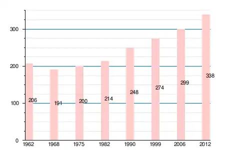 Численность населения коммуны в 2011 году составляла 331 человек[6], а в 2012 году — 338 человек[5].