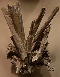 Соединение состава (Sb3+, Ca)2−xSb25+(O,OH)6-7 · n H2O) синтезировано путем непродолжительного нагревания сурьмяной кислоты при 800°С[4].