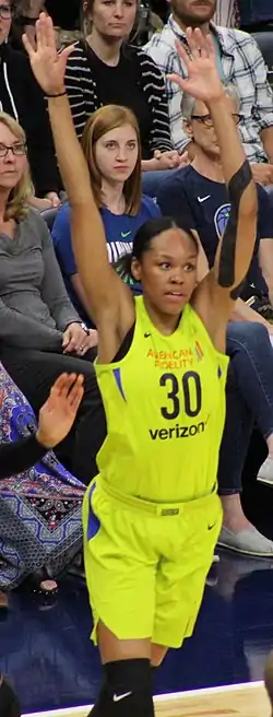 ![]() Стивенс в игре за «Даллас Уингз» против «Миннесота Линкс» (23 мая 2018 года) | |||||||