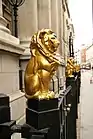 Ограда с фигурами позолоченных львов перед зданием Лондонского юридического общества.