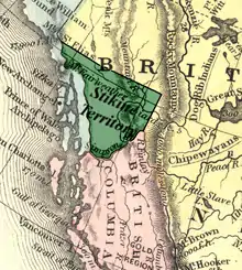 Границы территории были определены следующим образом: на севере — по 62-й параллели, на востоке — по 125-му меридиану, на юге — по рекам Насс и Финлей, на западе — по границе с Русской Америкой.