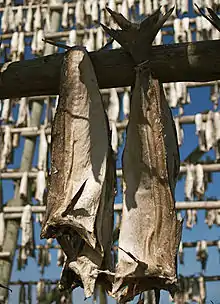В северных регионах России, где длительный период в году держится низкая температура, пресно-сушёный продукт из тресковых и частиковых рыб заготавливается методом вымораживания под крытыми вешалами[5].
