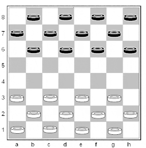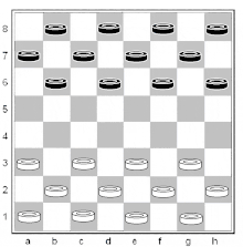 3. ЦЕЛЬ ИГРЫ - в заключительной позиции на горизонтальной половине доски соперника получить суммарное большинство белых и чёрных шашек, то есть 13 или более шашек.