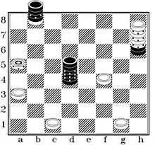 Аналитический и игровой интерес представляют также столбовые поддавки и столбовые двухходовые шашки.