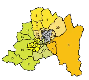 | Политико-административное деление области Сантьяго | ||||||||||||||||||||||||||||||||||||||||||||||||||||||||||||||||||||