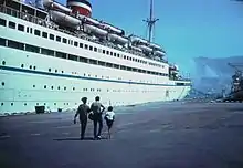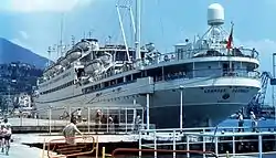 | Пароход «Берлин» в период работы в «Норддойче Ллойд» | У ялтинского причала в 1985 году | «Адмирал Нахимов» в порту Новороссийска в день катастрофы |
