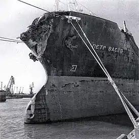 ![]() «Пётр Васёв» после столкновения | |