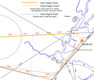 40°33′51″ с. ш. 74°05′44″ з. д. — точка столкновения 40°40′38″ с. ш. 73°58′26″ з. д. — место падения DC-8 |