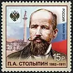 Пётр Арка́дьевич Столы́пин (2 [14] апреля 1862[1], Дрезден, Саксония — 5 [18] сентября 1911, Киев) — русский государственный деятель, статс-секретарь Его Императорского Величества (1908), действительный статский советник (1904), гофмейстер (1906). Гродненский (1902—1903) и саратовский (1903—1906) губернатор, министр внутренних дел и председатель Совета министров (1906—1911), член Государственного совета (1907—1911).