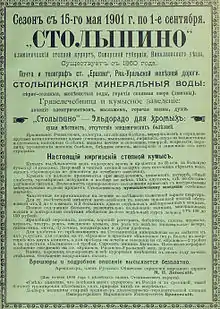 - Столыпинские минеральные воды // Энциклопедический словарь Брокгауза и Ефрона : в 86 т. (82 т. и 4 доп.). — СПб., 1890—1907.