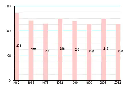 | 1962 | 1968 | 1975 | 1982 | 1990 | 1999 | 2006 | 2008 | 2011 | 2012 |