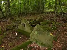- К югу от хутора Лесо-Кяфарь, находящегося, в свою очередь, южнее станицы Сторожевой, на левом берегу реки Кривой, протекающей по дну одноимённой балки на правобережье Кяфара, в горно-лесистой местности (растут в основном берёза, бук, ольха)[7], расположено городище «Шпиль» X—XIII веков и могильники VII—IX веков и X—XII веков[36]. Последний могильник носит название «Статуи на Шпиле»[37]. Ранее данная территория относилась к колхозу имени Ленина[36]. Все объекты имеют статус памятников археологии, городище и «Статуи на Шпиле» — памятники федерального значения (с 1974 года, согласно постановлению Совета министров РСФСР)[37]. В комплексе объектов, вероятно, аланского периода особо выделяются дольмены[38].