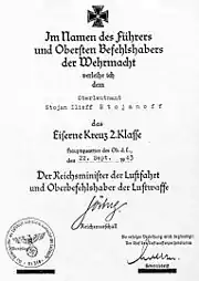 - Также был награждён немецким Железным крестом 2-го класса.