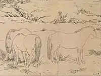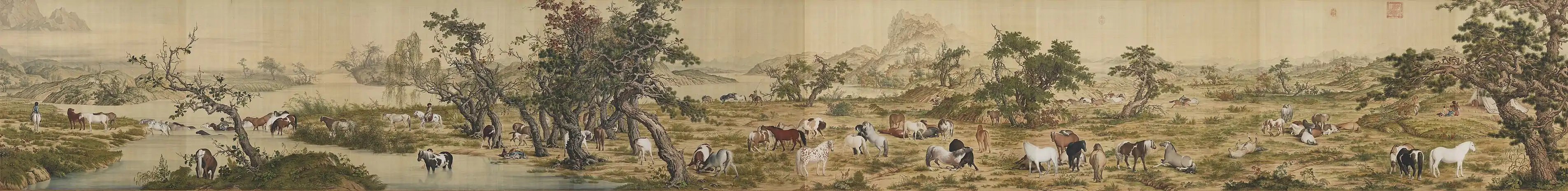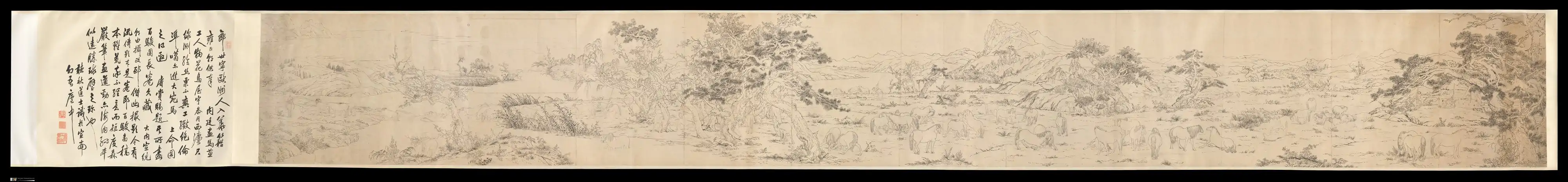 - 清 郎世寧 百駿圖白描稿 卷 One Hundred Horses. The Metropolitan Museum of Art.