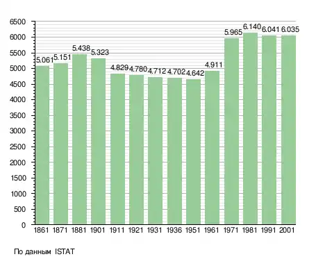 Население составляет 6333 человека (2008 г.), плотность населения составляет 274 чел./км². Занимает площадь 22 км². Почтовый индекс — 10019. Телефонный код — 0125.