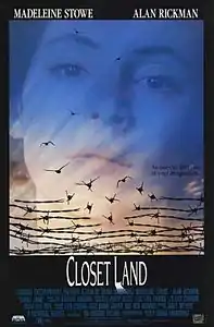 «Страна в шкафу» — дебютный фильм Рады Бхарадвадж, американки индийского происхождения, вышедший на экраны в 1991 году. Действие фильма происходит в одной комнате, с участием всего двух персонажей — задержанной детской писательницы (Мэделин Стоу) и допрашивающего её следователя (Алан Рикман).