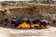 По некоторым сведениям эта фраза относится либо к естественному горению поверхностных нефтяных залежей, либо к разведению огня в храмах некогда доминировавшего на территории современного Азербайджана зороастризма[4][5].