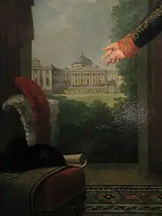 «Торжественная полудуга открытой двойной колоннады»[4] перед Троицкой церковью была спроектирована в 1803 году, когда не стало любимой супруги графа — бывшей крепостной актрисы Прасковьи Жемчуговой. Мемориальный характер проекту Странноприимного дома придал мастер классицизма — Джакомо Кваренги, который по своему обыкновению дорабатывал чертежи «дистанционно», не выезжая из Петербурга.