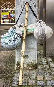 Деревянный посох странника (нем. Wanderstock) — очень важный атрибут «скитальца». Он служит надёжной опорой при ходьбе по просёлочным дорогам особенно в непогоду — при дожде, ураганном ветре, снежной метели. Посох помогает отбиваться от нежданных нападений, выполняя роль дубинки. Во время непредвиденного ночлега вдали от селений посох служит вешалкой для одежды. Свой посох подмастерье делает сам, сначала отыскивая в лесу скрюченный ствол дикой вишни, чтобы его Wanderstock получился витым. Часто встречаются разные варианты украшения посохов ручной резьбой[3][5].