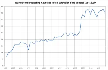 Количество стран, участвующих в Евровидении, имеет тенденцию к росту. На первом Евровидении в 1956 году было всего 7 стран, а в 2017 году уже 42 страны. Рекордными годами с 43 участниками являются 2008, 2011 и 2018. Из-за роста количества участников в начале 1990-ых годов, начали вводить предварительные отборы и ограничения. В 1993 году был проведен первый предварительный отбор под названием «Квалификация за Милстрит» для того чтобы определить три восточноевропейские страны из семи, которые примут участие в Евровидении 1993. После 1993 года было введено правило, что шесть стран с наихудшим результатом не могут принимать участие в следующем году, но при этом нельзя дисквалифицировать страну второй год подряд. В 1996 году было введено правило, что все страны, которые хотят принять участие в Евровидении, должны прислать в жюри записи песен своих исполнителей и жюри предстоит выбрать из них 22 лучших, которые и примут участие в Евровидении. Странам которые принимали конкурс давалось бесспорное право участвовать в конкурсе. С 1997 до 2001 года использовалось правило, по которому не участвовали в конкурсе страны с самым низким средним баллом за последние пять лет. В 2001-2003 годах вновь использовалось правило 1993-1996 годов.