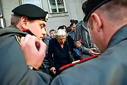 Большой общественный и международный резонанс вызвала акция 31 декабря 2009 года, во время которой бойцами ОМОНа в числе десятков других задержанных была схвачена и препровождена в отделение милиции председатель МХГ Людмила Алексеева. Председатель Европарламента Ежи Бузек и Совет национальной безопасности США высказали своё возмущение задержанием известной правозащитницы,[13] газета «The New York Times» предоставила свою первую полосу статье об этой акции протеста «Энтузиазм российских диссидентов вынесет любые испытания».[14]