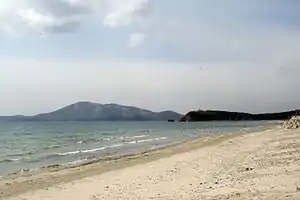 ![]() На берегу залива Стрелок, вдали — остров Путятина | |