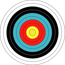 Стрельба ведётся по стандартным мишеням World Archery. Бумажные мишени состоят из концентрических кругов разного цвета. Размеры приведены в таблице. Размер мишени[8] для олимпийской дистанции 70 метров — 122 см.