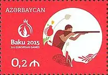 Стрельба на почтовой марке Азербайджана, посвящённой Европейским играм 2015