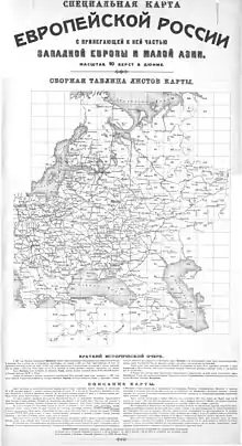 - «Специальная карта Европейской России» (1865—1871) (изданная военно-топографическим отделом Главного штаба под редакцией Стрельбицкого). Масштаб карты — 10 вёрст в дюйме (в 1 см 4,2 км), состоит из 178 листов и заключает в себе не только европейские владения России, но и большую часть Пруссии и Австро-Венгрии, Балканский полуостров, части Малой Азии и Турции. Основана, более чем на 20 тысячах астрономических и геодезических пунктах.