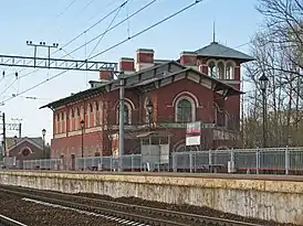 Здание вокзала строилось в 1854—1857 годах по проекту известного архитектора Н. Л. Бенуа[2]. Открыта в 1857 году. Проект деревянных навесов для пассажиров на перронах принадлежит архитектору С. Н. Лазареву-Станищеву (1863—1912).