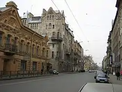 Вид с Большого проспекта: особняк Васильева (слева) и дом Путиловой (справа)