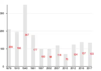 | 1879 | 1910 | 1940 | 1961 | 1997 | 2002 | 2007[16] |