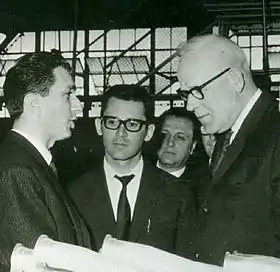 ![]() Константин Васильевич Строганов (справа) и Е. А. Башинджагян (слева) на ЗИЛе во время совещания по проекту КАМАЗ | |