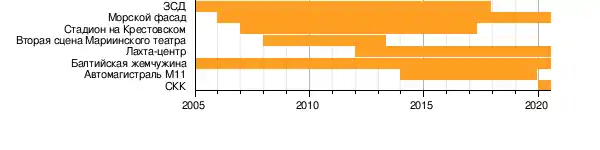 Санкт-Петербург является традиционным местом активного строительства, наряду с Москвой. Крупные строительные компании активно инвестируют в городе, реализуются и планируются крупные строительные объекты. По состоянию на 2020 год главные стройки города — это Лахта-Центр и реконструкция СКК.