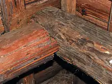 - в деревянных брусчатых или рубленых зданиях — на верхние венцы;