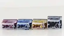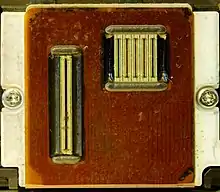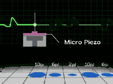 - Пьезоэлектрическая (Piezoelectric Ink Jet)[3] — над соплом расположен пьезокристалл с диафрагмой. Когда на пьезоэлемент подаётся электрический ток, он изгибается и тянет за собой диафрагму — формируется капля, которая впоследствии выталкивается на бумагу. Первый принтер выпустила Siemens в 1977 году[4]. А широкое распространение технология получила в струйных принтерах компании Epson. Технология позволяет изменять размер капли за счёт более крупных сопел, что, с другой стороны, приводит к более низкому разрешению печати нежели у термоструйной печати.