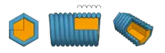 Струны с гексагональной оплёткой состоят из шестиугольного в сечении керна с туго намотанной на него проволокой (обычно круглой), которая при этом повторяет форму керна. Это решает проблему кручения оплётки вокруг сердечника, так что она не будет вращаться и выскальзывать из-под пальцев. Некоторые говорят, что шестигранный сердечник улучшает звук в силу более тесной связи между ним и оплёткой.[6] Недостаток — относительно острые рёбра струны менее удобны для пальцев и изнашивают накладку и ладовые порожки ещё быстрее круглой оплётки. Шестигранные струны чаще всего используются на басовых инструментах (таких как бас-гитара).