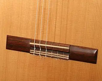 Струнодержатель может состоять из цельного куска материала (в основном — дерева), который помещается между струнами и резонирующей поверхностью.