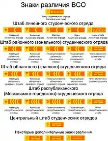 - Комиссар — руководитель отряда наравне с командиром. Формально должность комиссара ССО была «выборной», однако отбор и утверждение на неё было исключительной прерогативой парткома (партбюро) учебного заведения, действовавшего на основании формального представления комитетом ВЛКСМ «выбранной» кандидатуры. По общему правилу, в комиссары назначались члены КПСС, кандидаты в члены КПСС или комсомольские активисты, внесённые в негласную «очередь» на приём в КПСС. Часто комиссарами ВССО посылали не студентов, а аспирантов или младших сотрудников из преподавательского состава. Отвечая, подобно армейским замполитам, за политическую и культурно-массовую работу, комиссары становились во главу неуставной комсомольской организации ВССО, имея право ставить на её собраниях вопрос вплоть до исключения нарушителей из ВЛКСМ (и ВУЗа).