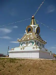 - Ступа Результатов — верхушка ступы от колец и выше, символизирующая результат пути, то есть само Просветление.