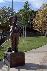 - В апреле 2009 года бронзовая скульптура Лорела и Харди была установлена в Алверстоне[13].