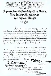 - Instrument of Surrender, Rabaul. Национальный Архив Австралии (6 сентября 1945). Дата обращения: 11 мая 2015.