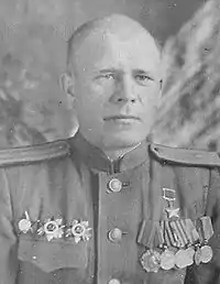 - Награждён орденами Ленина (27.02.45), Отечественной войны 1-й (25.05.45) и 2-й (22.09.44) степеней, Красной Звезды (07.10.43), медалями.