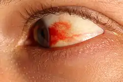 Субконъюнктивальное кровоизлияние (или субконъюнктивальное кровотечение), также известное под именем гипосфагма — кровотечение под конъюнктиву . Конъюнктива содержит много мелких, хрупких кровеносных сосудов, которые легко повреждаются или ломаются. Когда это происходит, кровь просачивается в пространство между конъюнктивой и склерой.