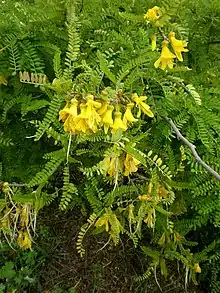 Софора торомиро (Sophora toromiro) — небольшое дерево, до 3 м в высоту, или кустарник, с перистыми листьями, покрытыми шелковистыми белыми волосками, желтыми цветками и длинными узкими плодами[7].