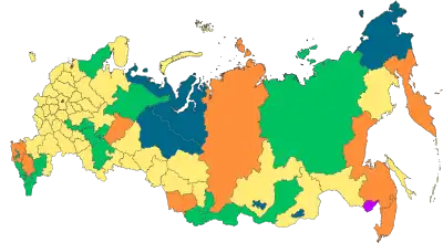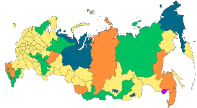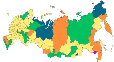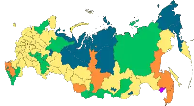 | 22 республики[2] | 9 краёв | 46 областей | ||||||