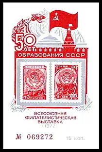 В Советском Союзе первый такой листок был издан Министерством связи СССР в октябре 1967 года по случаю Всесоюзной филателистической выставки, посвящённой 50-летию Октябрьской революции. Известен также редкий сувенирный почтовый блок, выпущенный крайне ограниченным тиражом (всего 500 экз.) и приуроченный к I Всесоюзной филателистической выставке в декабре 1932 года (ЦФА [АО «Марка»] № 405), который, несмотря на включение в каталог ЦФА, в почтовом обращении не был и является скорее сувенирным листком. Он распространялся вместе с пригласительным билетом на открытие выставки.