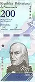 200 | Голубой, серый, фиолетовый | Франсиско Миранда | Солдатский ара | Франсиско Миранда, номинал |