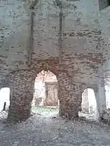 | Руины церкви во имя Владимирской иконы Божьей Матери, на закладке фундамента которой в 1791 году присутствовал А. В. Суворов | Остатки внутреннего убранства церкви во имя Владимирской иконы Божьей Матери, XVIII век | Остатки внутреннего убранства церкви во имя Владимирской иконы Божьей Матери, XVIII век |